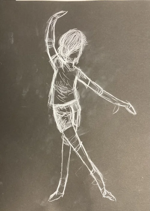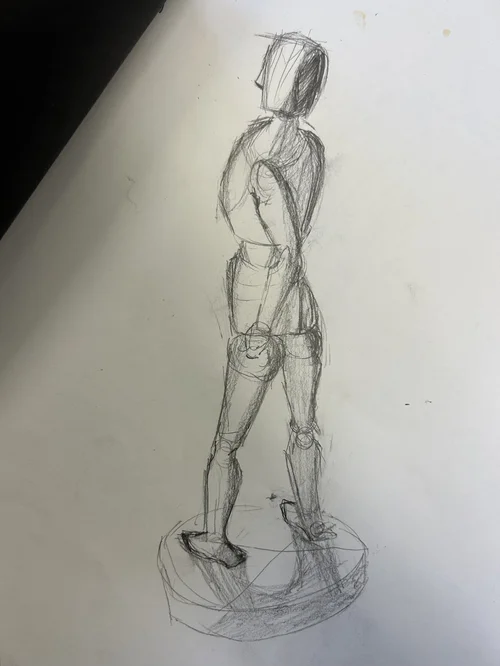 Students are working on sketching poses on the wooden mannequin to prepare for live figure drawing